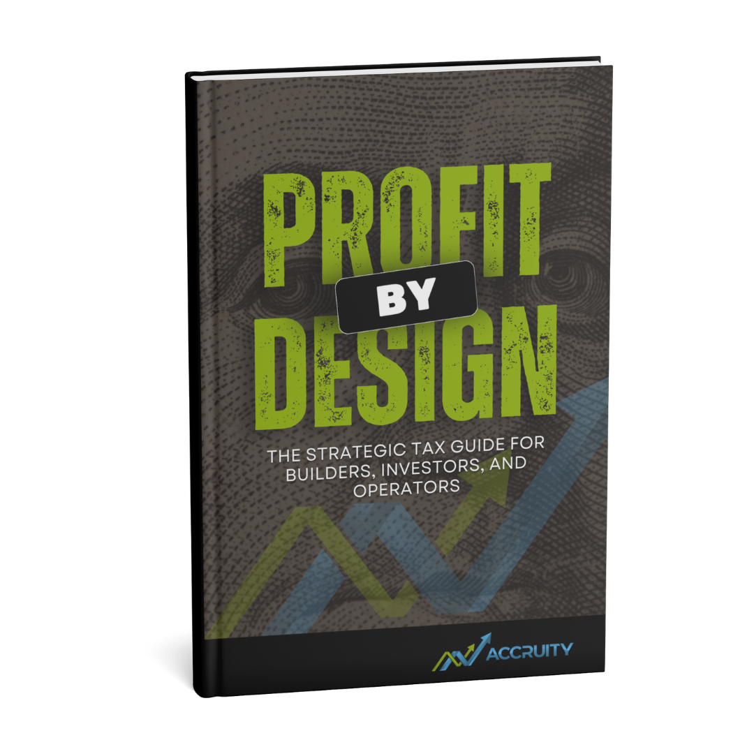 Download our FREE e-book “Profit by Design” to learn how to cut your tax bill without cutting corners, and stop leaving tens of thousands on the table every year.
